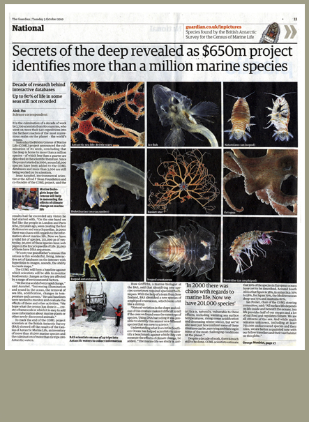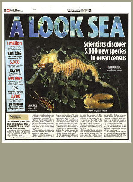 - Census of Marine Life: “Decade of Discovery” news campaign and launch at Natural History Museum, London